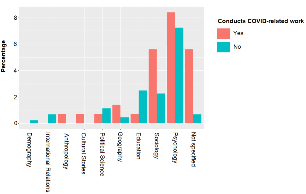 Figure 5. Presence of social science (sub)disciplines among scholars working on COVID-19 or other topics